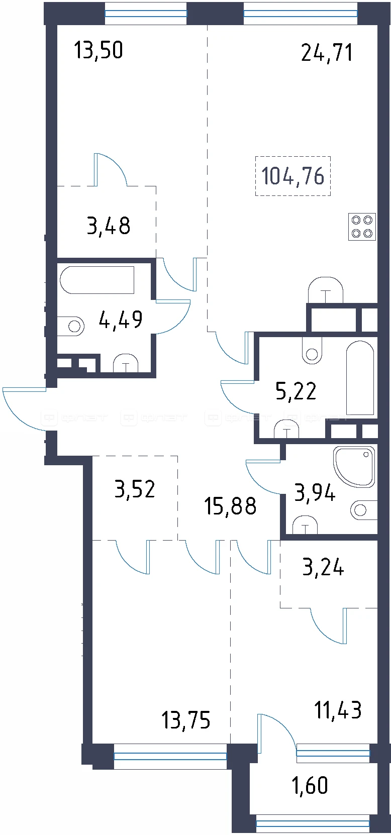 - 104.76/38.68/24.71 м²